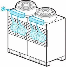 従来、室外機の冷却システムとしては日除けや散水装置が一般的でした。しかし、日除けは冷却効果が弱く、散水装置は冷却効果は高いものの、散水する水に含まれる塩素等の影響で室外機のフィンが腐食してしまうなど、室外機自体への悪影響のリスクがありました。